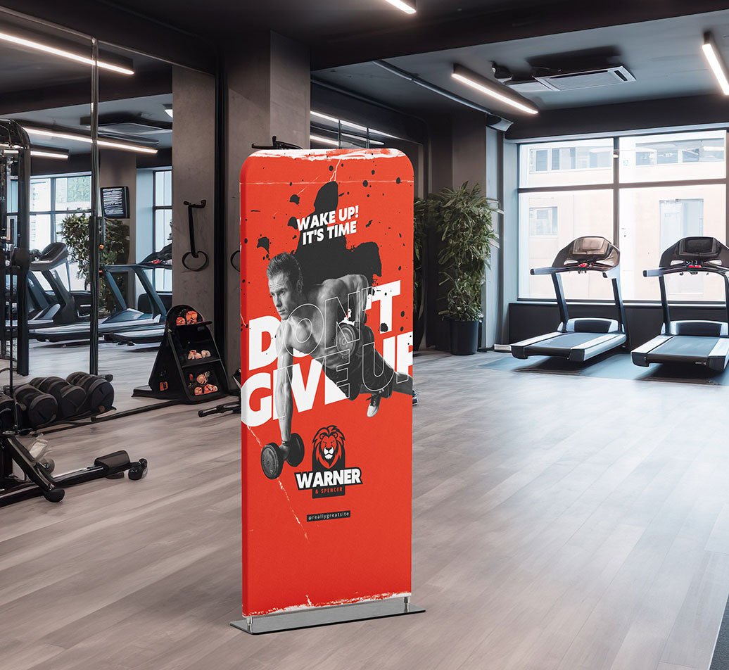 Rigid tension banners feature a lightweight and durable frame designed to securely hold graphics in place. The graphic material is tensioned across the frame, creating a smooth, flat surface that resists wrinkles and distortions, maintaining a professional appearance. This tensioning system ensures that the banner remains taut, even in high-traffic or outdoor environments.